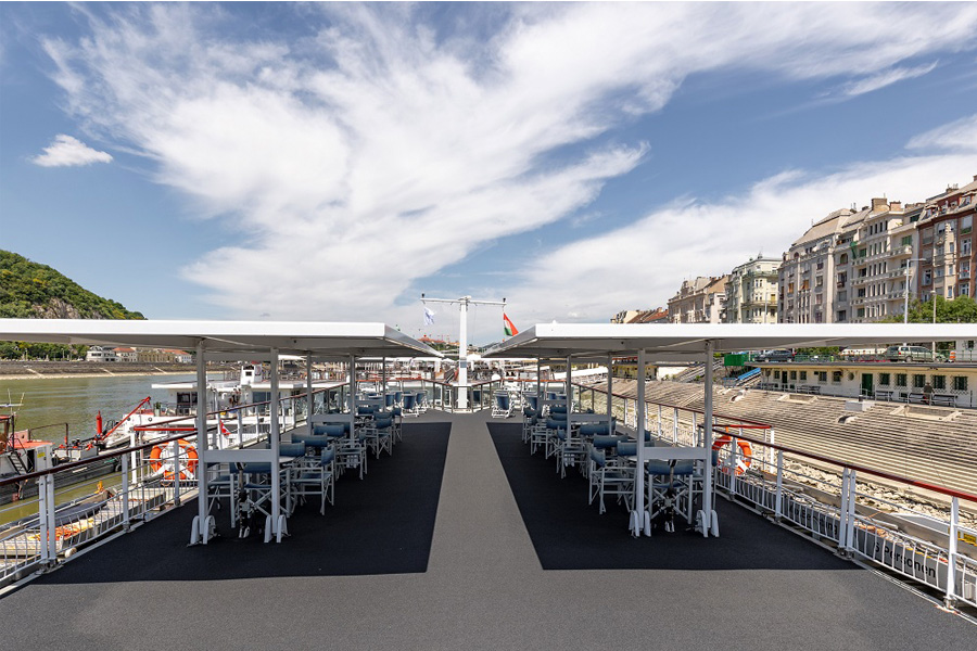 Открытый солярий – просторная солнечная палуба с удобными шезлонгами, где можно загорать и любоваться видами Дуная на свежем воздухе;