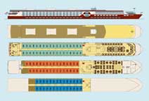 Каюты на верхней палубе с французским балконом. В каютах на средней палубе окна открываются. В каютах на главной палубе - нет. |
