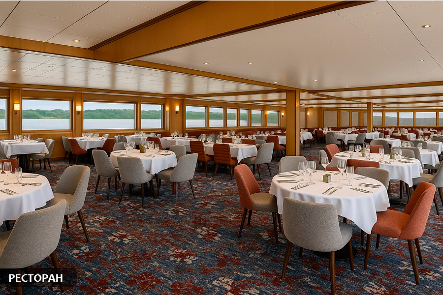 В ресторане на борту вас ждет разнообразное меню с блюдами европейской кухни: