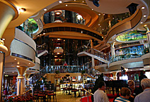 1122 кают (29 ценовых категорий)площадью 13,2-497 кв.м: 787 с видом на океан (из них 509 с балконом) и 363 внутренние. 20 кают оборудованы для инвалидов. В каютах: телефон, телевизор, фен, холодильник, ванная комната с душем. В каюте с балконом дополнительно: балкон, диван, обеденный гарнитур, ванная комната с ванной. В Гарден-Вилле дополнительно: гостиная, столовая, три отдельные спальни, собрание СD/DVD дисков, ванная комната (с джакузи и душевой кабиной), рояль, телевизор, холодильник, телефон, фен, сад в азиатском стиле, обеденный гарнитур, персональные лифт и лестница. Напряжение 110 V. |